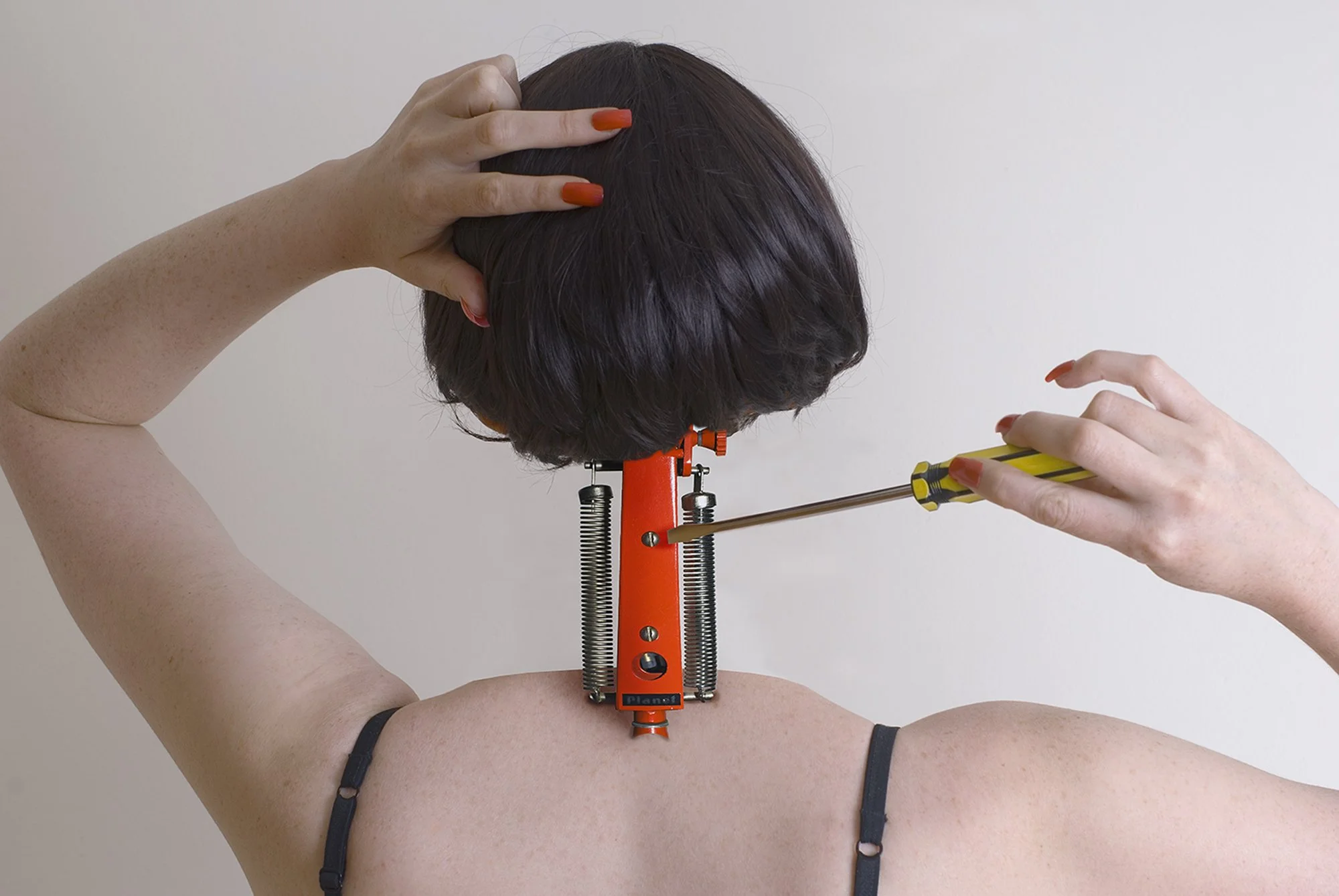 The images shift between the grotesque and the absurd. In one image the woman buffs her leg with a Bosch sander, in another she squeezes her flesh into control pants only to have the flesh mushroom out in other areas. I think my aim was to remove the context of these actions which is what makes them acceptable (e.g going to a cosmetics office to have fat sucked out of your hips and put into your lips) and place them in the domestic realm as an activity a woman undertakes whilst doing the vacuuming. Many of these acts are monstrous - have you ever seen a video of liposuction happening?? If that isn’t the very definition of monstrous then I don’t know what is.
